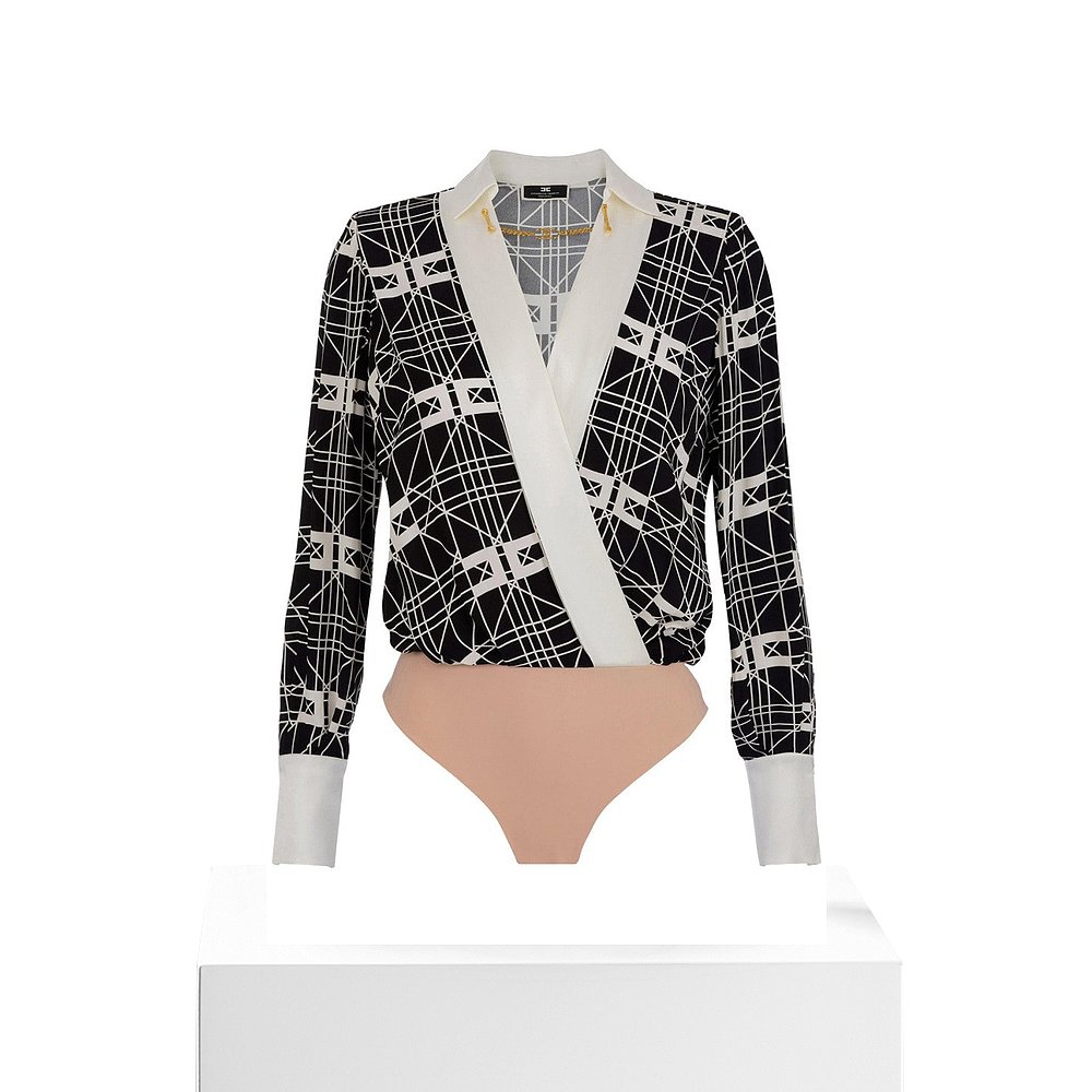 灰色 包裹设计和弹性混纺 美 franchi丝绸衬衫 自营elisabetta