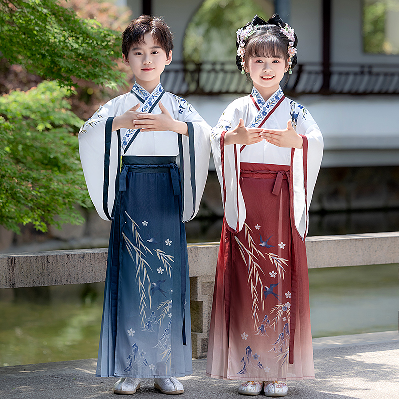 演出服开笔礼 中国风古装 汉服男童国学服儿童马面裙女夏季 2025新款