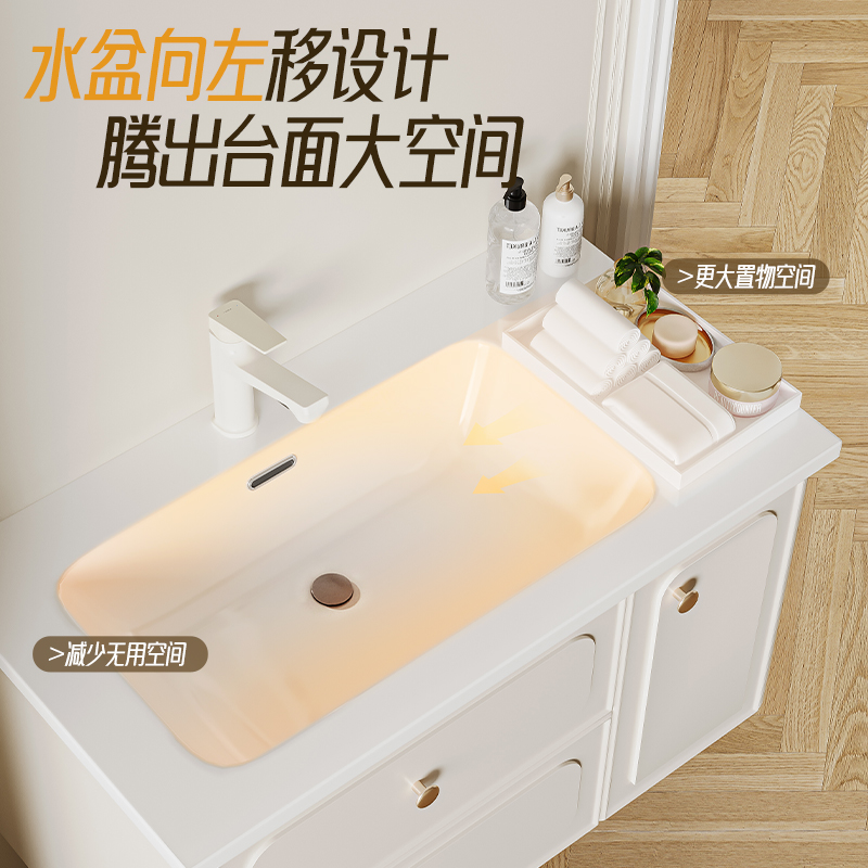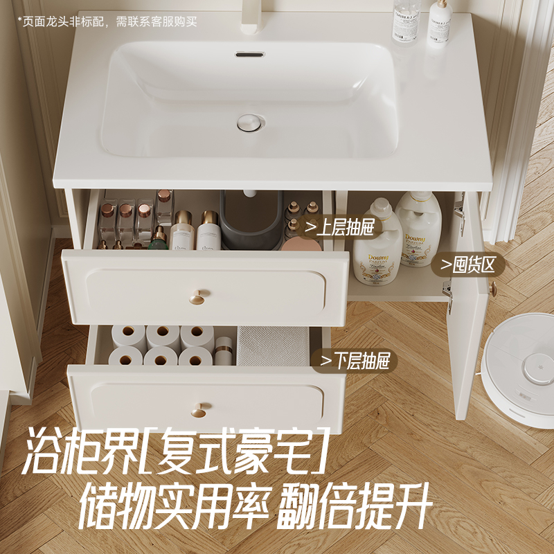 惠达轻奢奶油风法式 K80M 浴室柜陶瓷一体多功能浴室储物镜柜