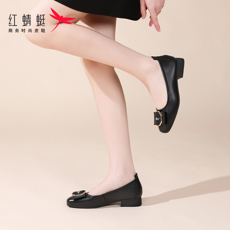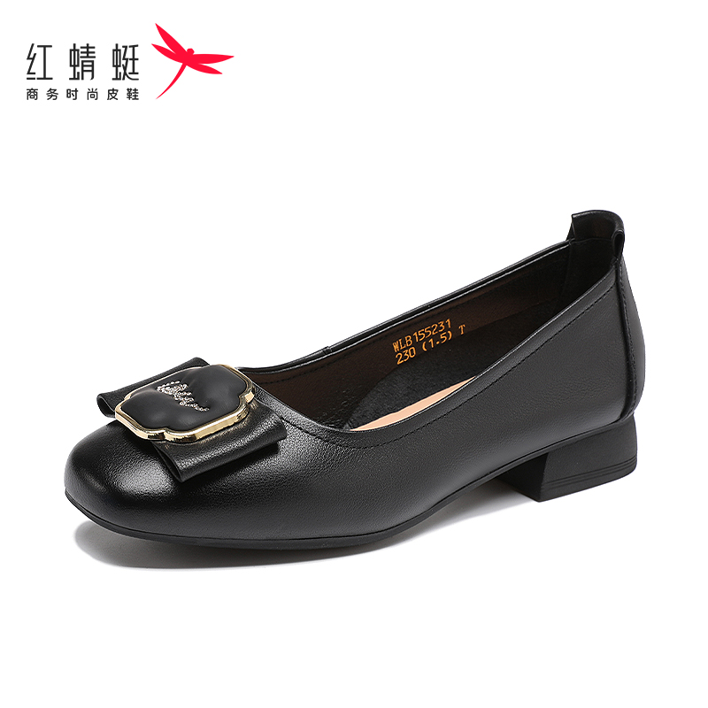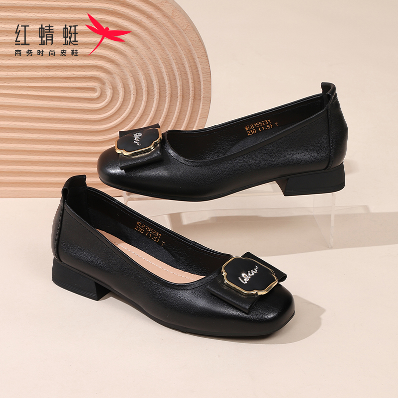 真皮软底一脚蹬中老年妈妈女士低跟小皮鞋 红蜻蜓女鞋 浅口休闲单鞋