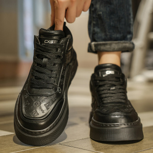 运动鞋 高帮休闲鞋 秋冬新款 子学生厚底男鞋 皮面鞋 征服鸿星尔克板鞋