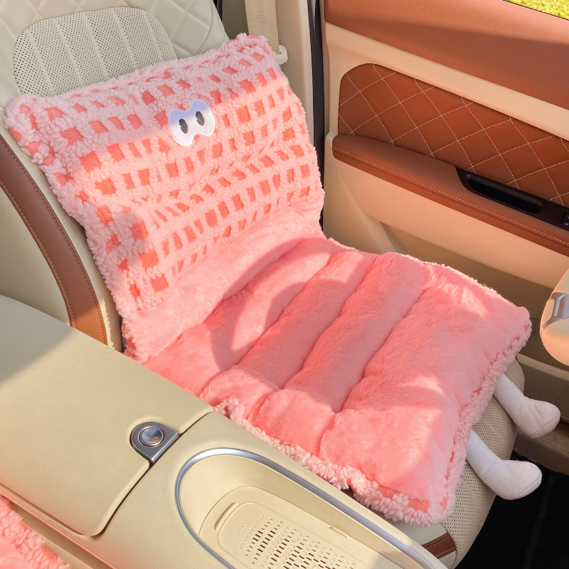 2025新款 毛绒加热女士高级感车内座椅冬天腰靠一体 汽车坐垫冬季