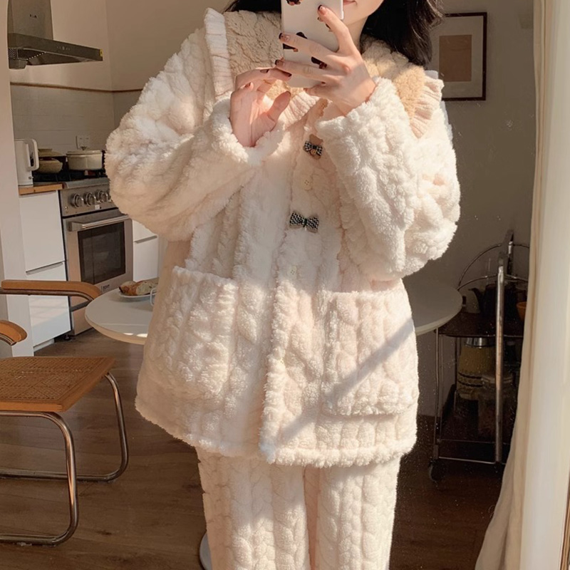 家居服春秋新款 加厚法兰绒加绒套装 珊瑚绒睡衣女秋冬季 2025年冬款