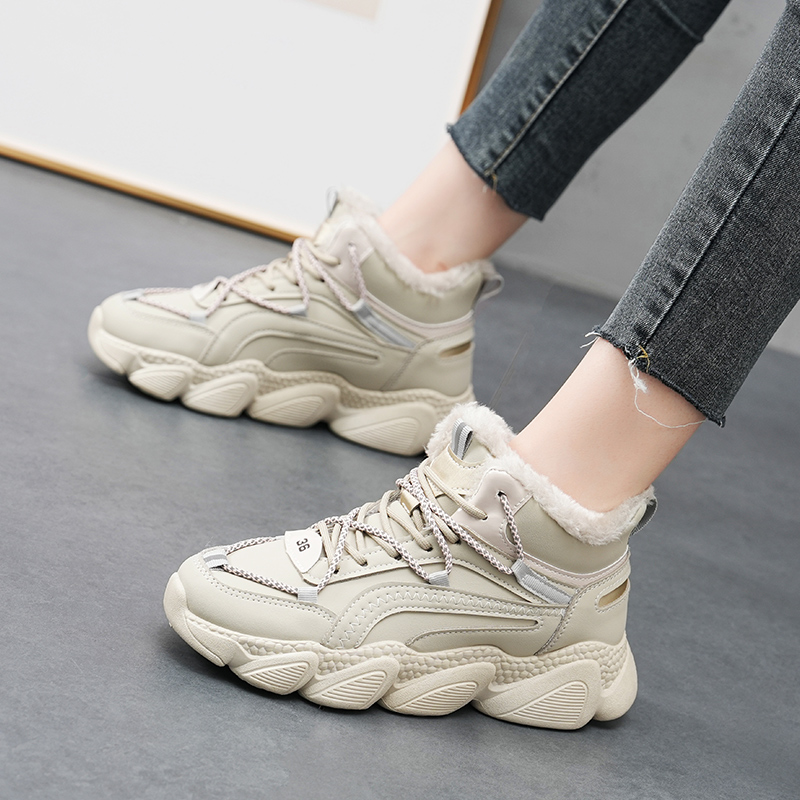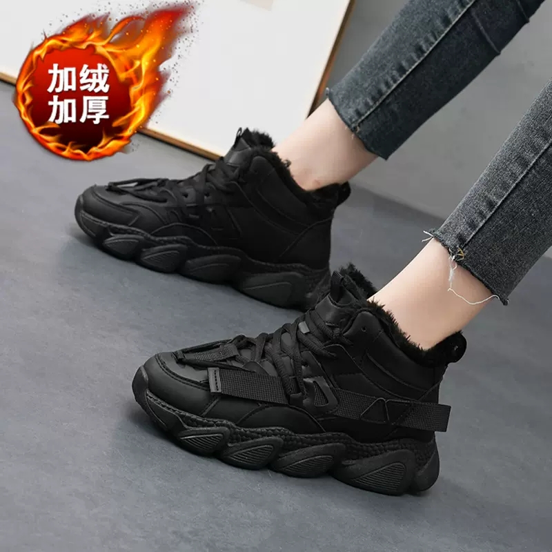 皮毛一体户外保暖加绒加厚棉鞋 冬季 女 2025新款 环球厚底雪地靴女款