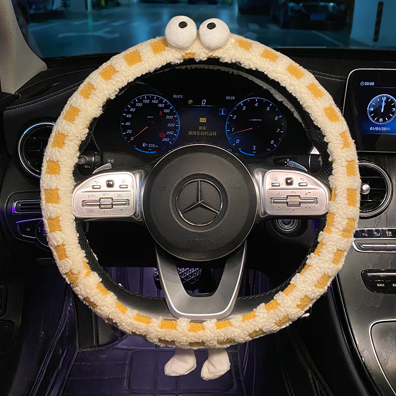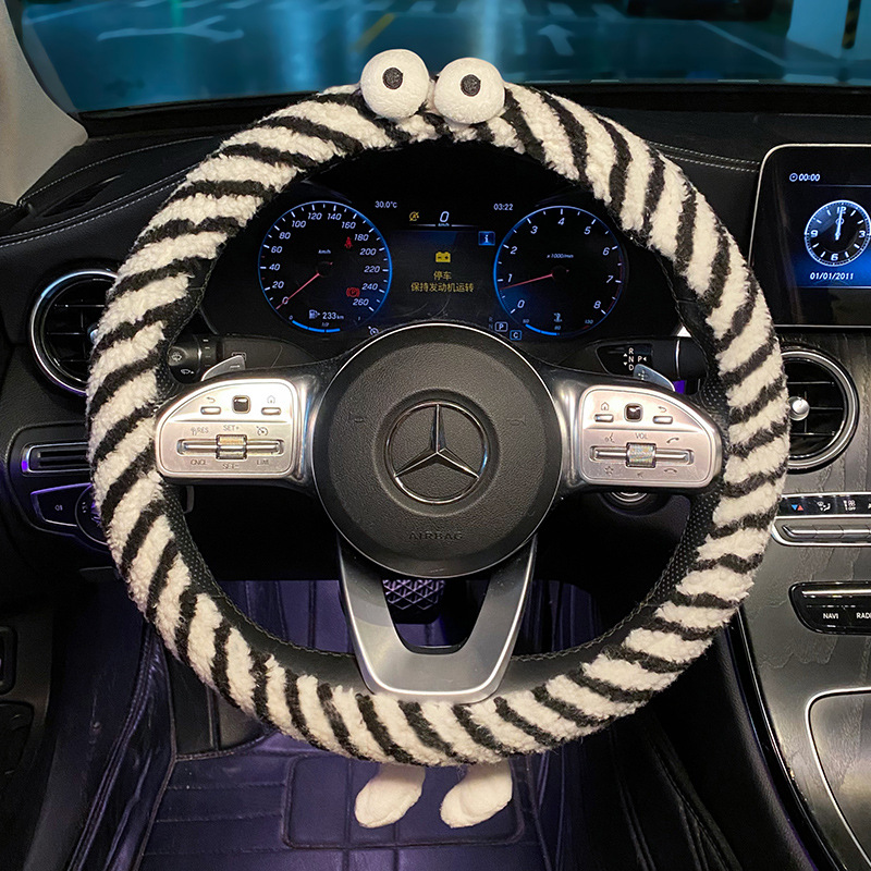 通用卡通车把套女 怪兽防滑保暖四季 汽车方向盘套冬季 毛绒2023新款
