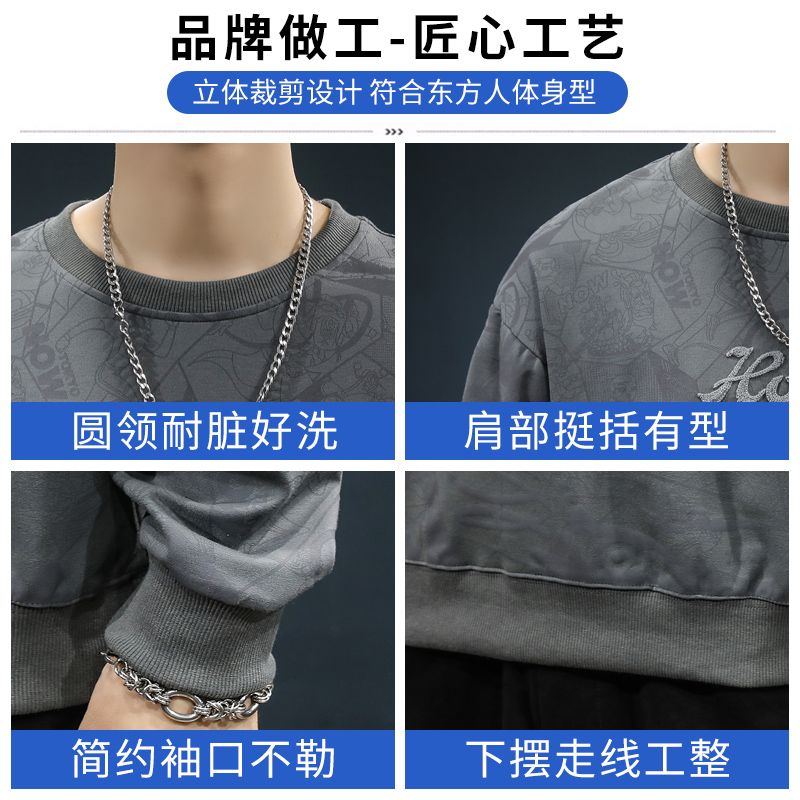 保暖长袖 潮牌宽松休闲上衣2025新款 T恤厚 秋冬季 罗蒙加绒卫衣男士