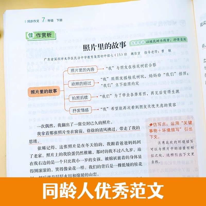 2025新版 初中生78年级语文教材配套阅读与写作理解训练书范文大全天天练作文精选开心作文 七年级八年级上册下册同步作文部编人教版