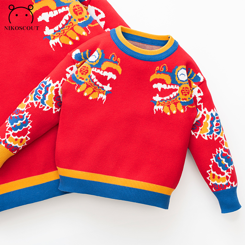 清仓超值亲子装 红色毛衣过年服春节国风拜年服新年一家三口母女装
