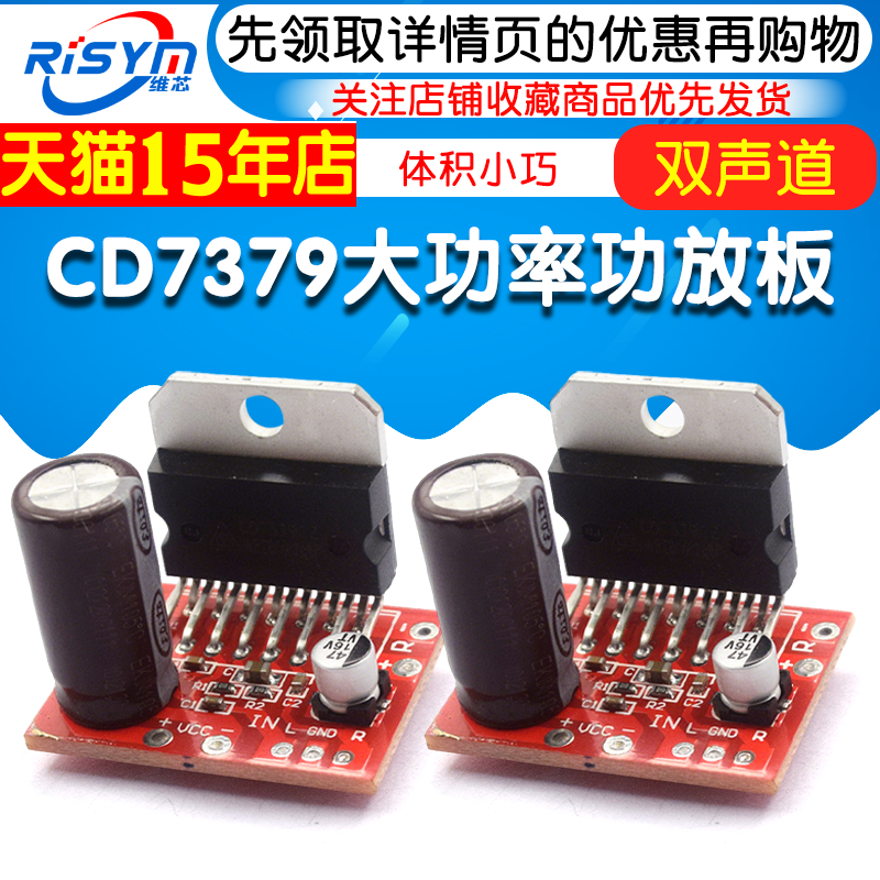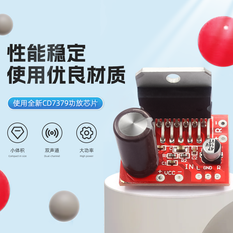 CD7379功放板双声道大功率小体积模块直流单电源供电DC9V 15V