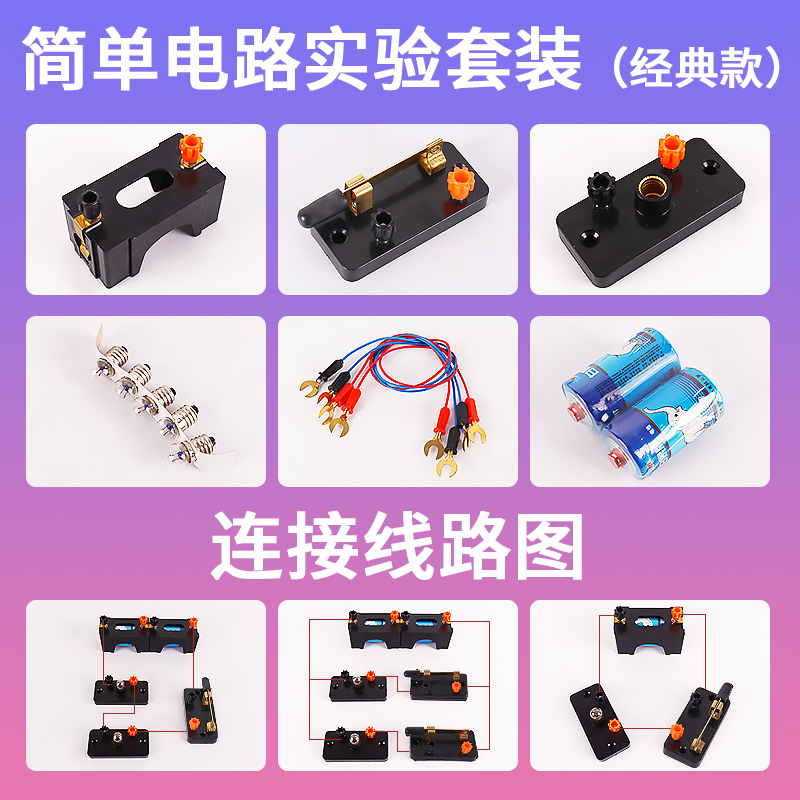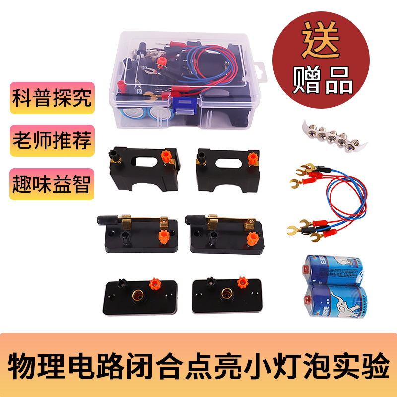 串联并联简易电路物理电学实验箱器材玩具小灯泡导线灯座开关电力科学套装 一号电池盒初三小学生电源线路连接