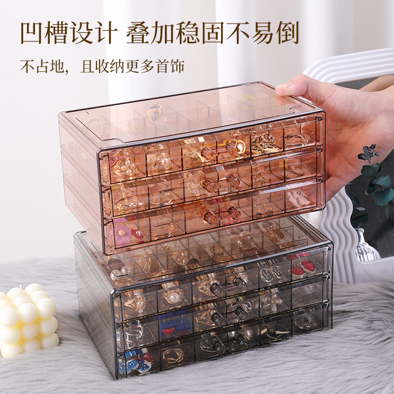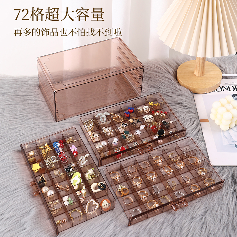 饰品耳环收纳盒分格透明大容量多层耳钉项链戒指防氧化桌面首饰盒