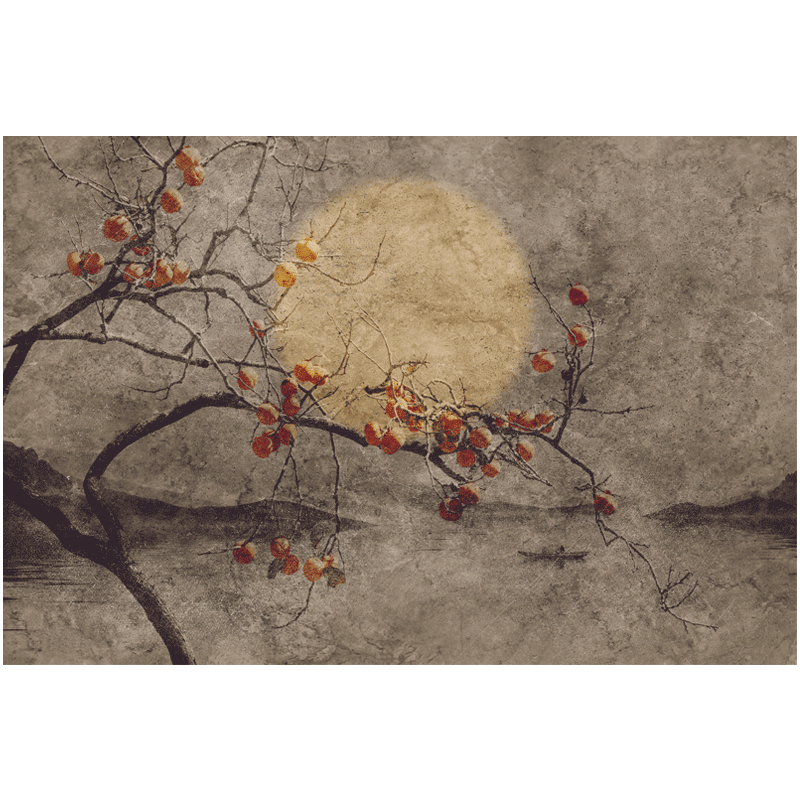 原创中式 饰画侘寂风茶室意境壁画艺术风景民宿挂画 玄关柿柿如意装
