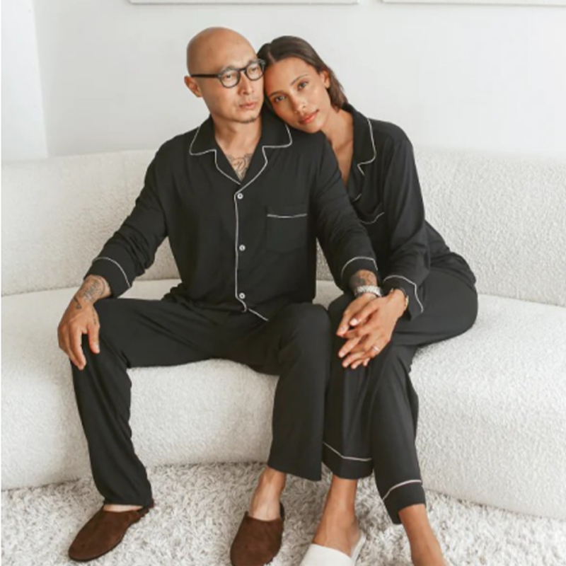 男春秋 带胸垫家居服套装 A类抗菌防螨纯棉情侣睡衣女长袖 红豆夏季