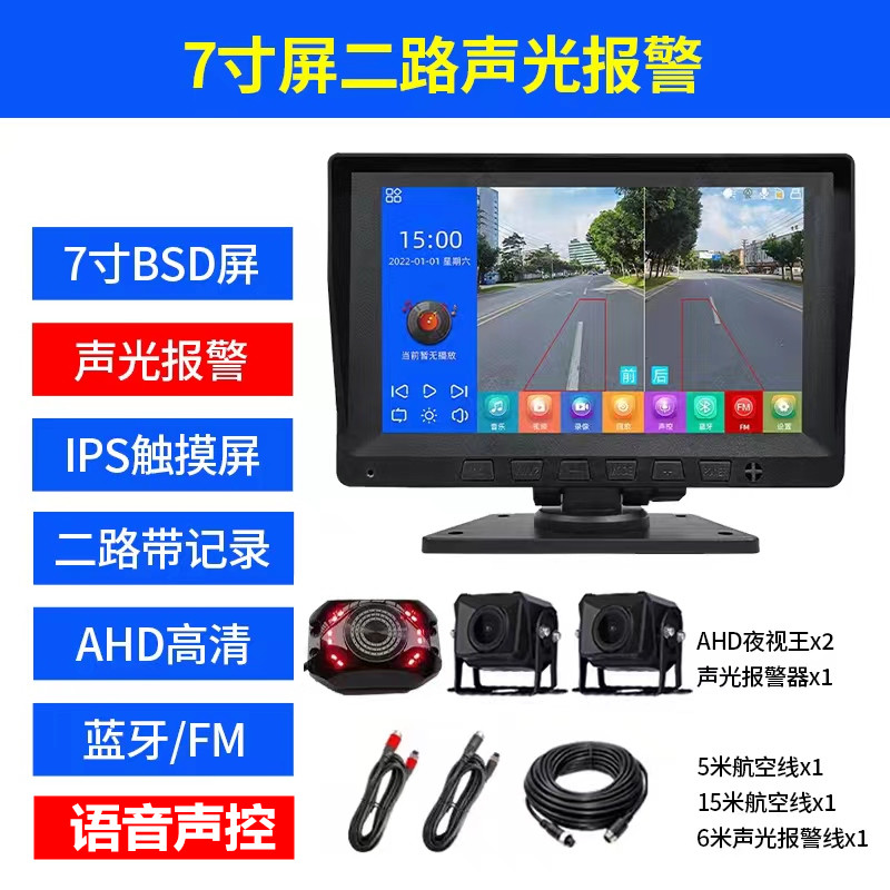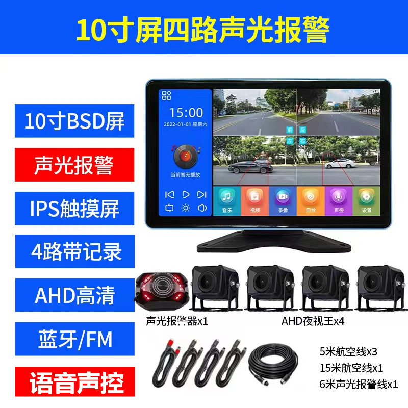 货车盲区雷达记录仪四路监控 声光喇叭报警倒车影像BSD监控盲区