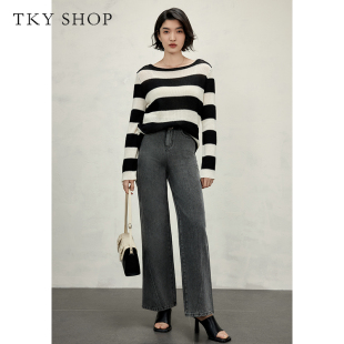 宽松显瘦裤 TKY 时尚 女春秋新款 子简约百搭复古 SHOP灰色阔腿牛仔裤