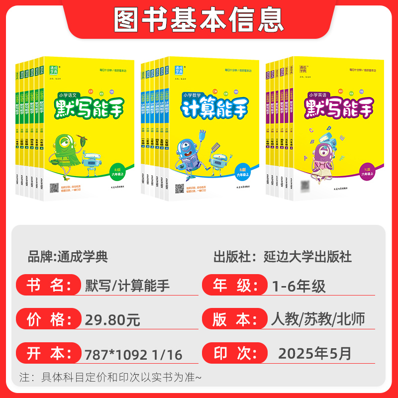 2025秋数学计算能手小学一1二2三3四4五5六6年级上册下册人教版 苏教北师小达人同步提优练习口算天天练专项思维强化训练练习题资料