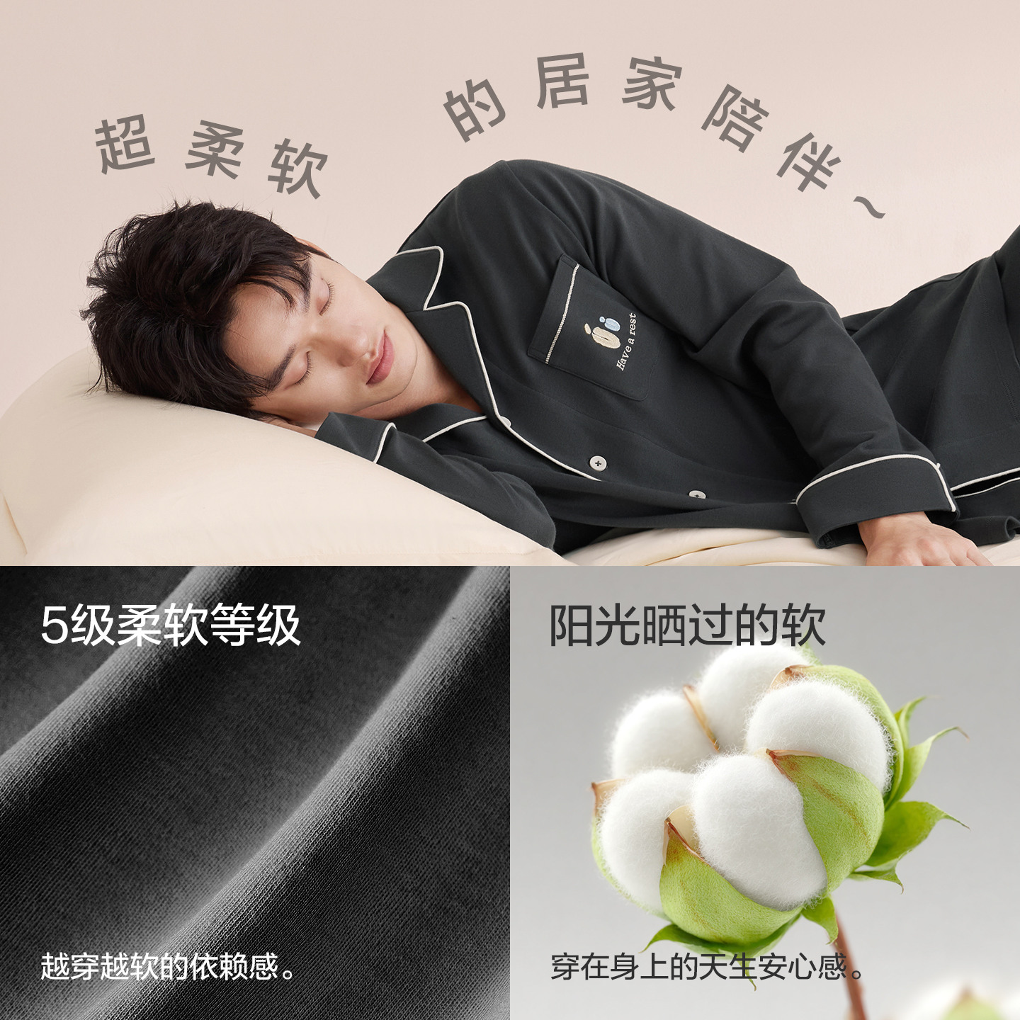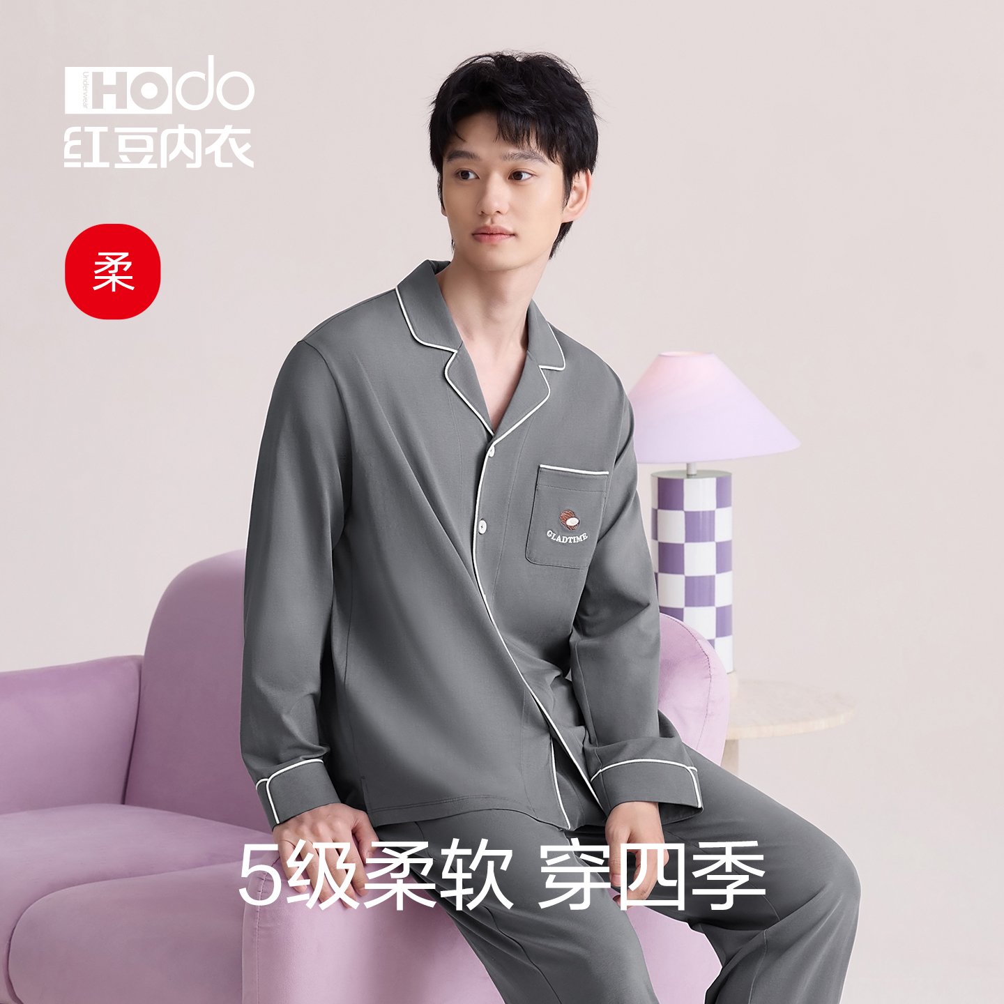纯棉睡衣2025新款 家居服套装 A类抗菌防螨秋冬季 男款 长袖 红豆男士