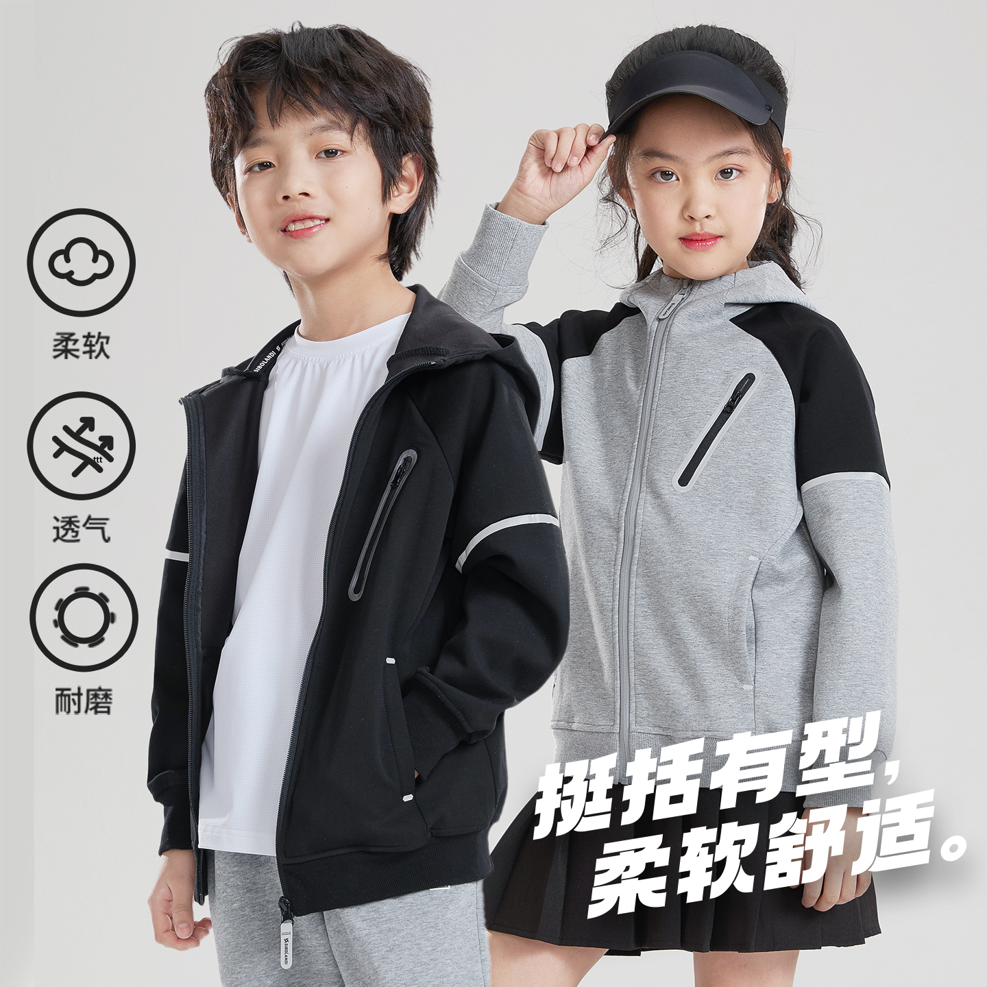 斯博兰帝2025新款 中大童上衣潮 儿童卫衣外套春秋男童女童连帽开衫