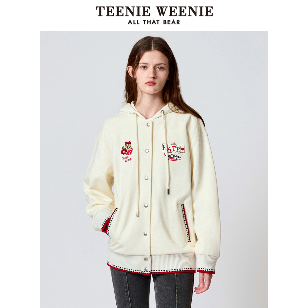 外套撞色 宽松卫衣开衫 TeenieWeenie小熊奥莱美式 连帽插肩袖