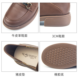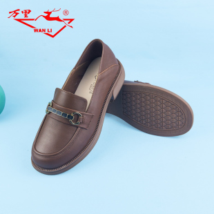 舒适百搭粗跟单鞋 复古圆头女鞋 HOT2920 真皮休闲乐福鞋 万里新款