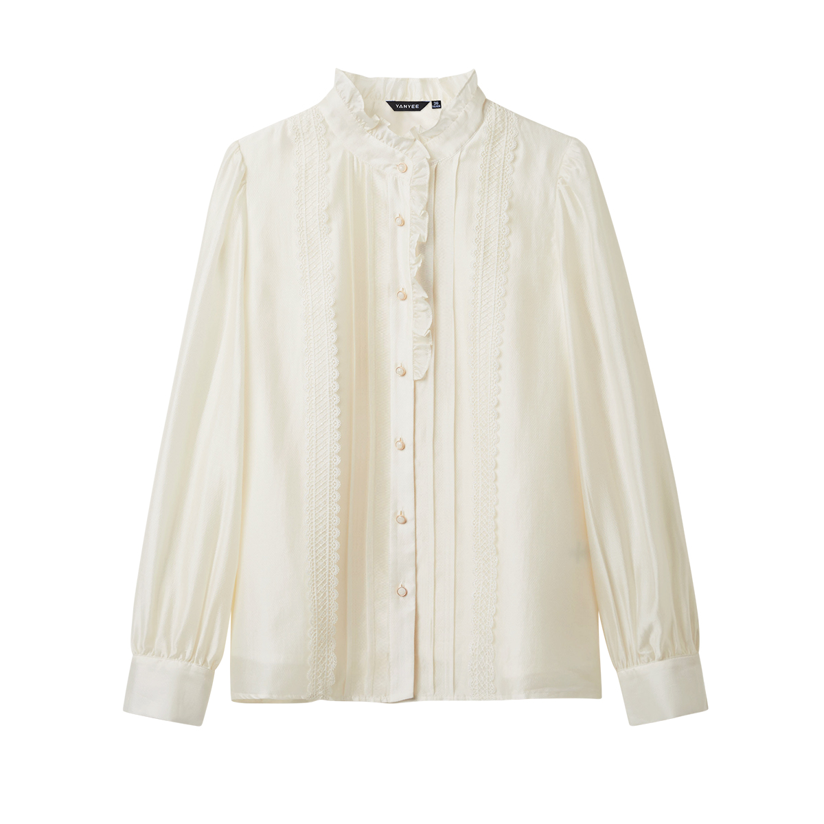 立领女士衬衫 天丝小衫 2024新款 上衣通勤气质衬衣时尚 秋装 颜域长袖