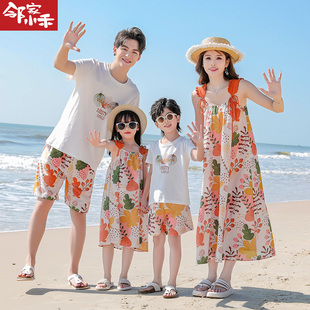 洋气母女沙滩长裙 2025新款 亲子装 一家三口四口三亚海边度假旅游装