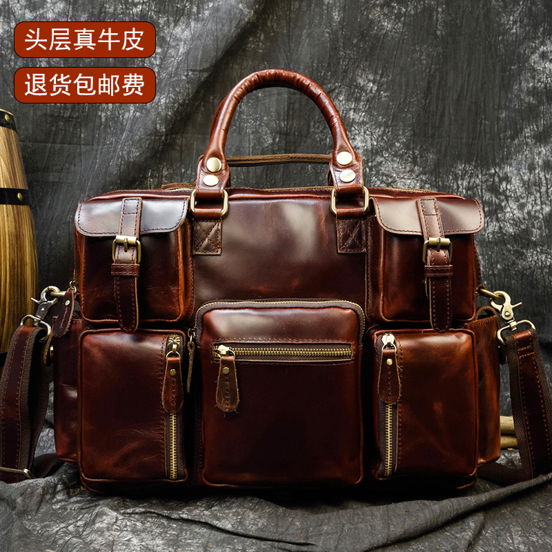 手提包大包男 商务电脑包机车包横款 2025新款 头层牛皮超大容量男士