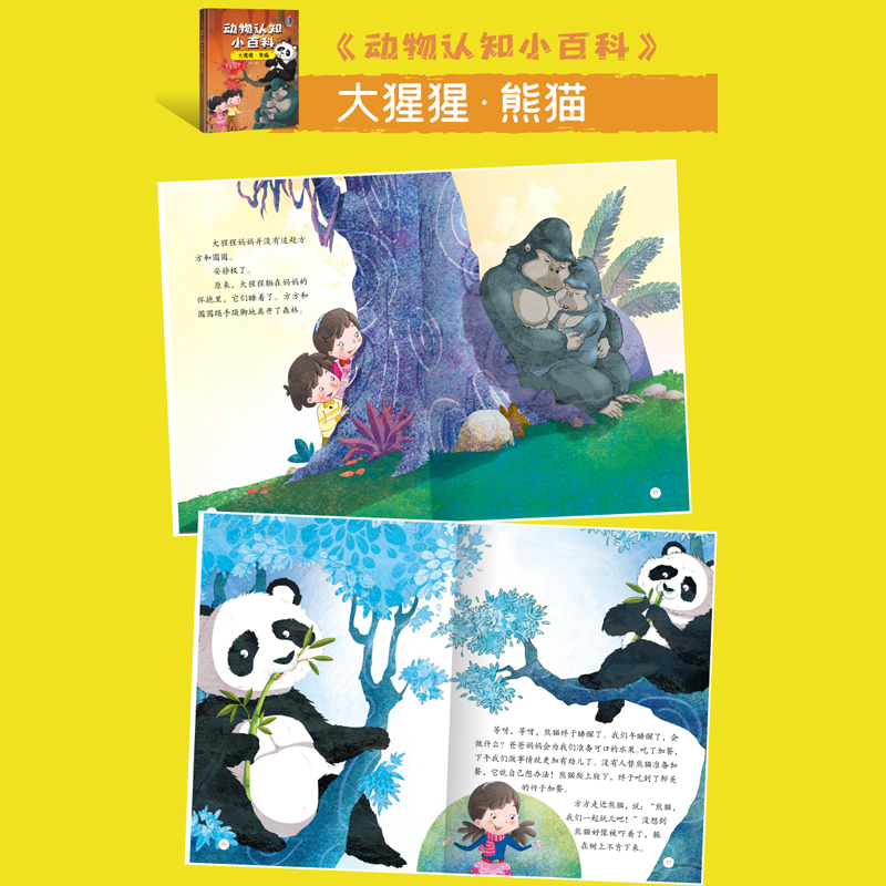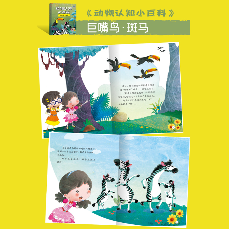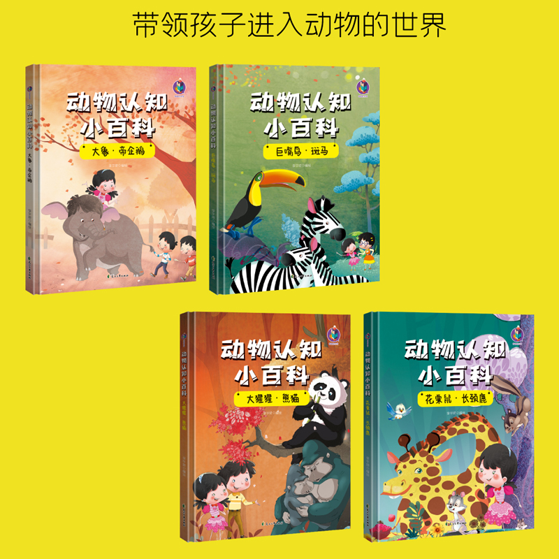 动物认知百科全书3 带宝宝认识 熊猫 巨嘴鸟 斑马 长颈鹿 大猩猩 花栗鼠 6岁幼儿园故事绘本 动物认知小百科大象 全4册 帝企鹅