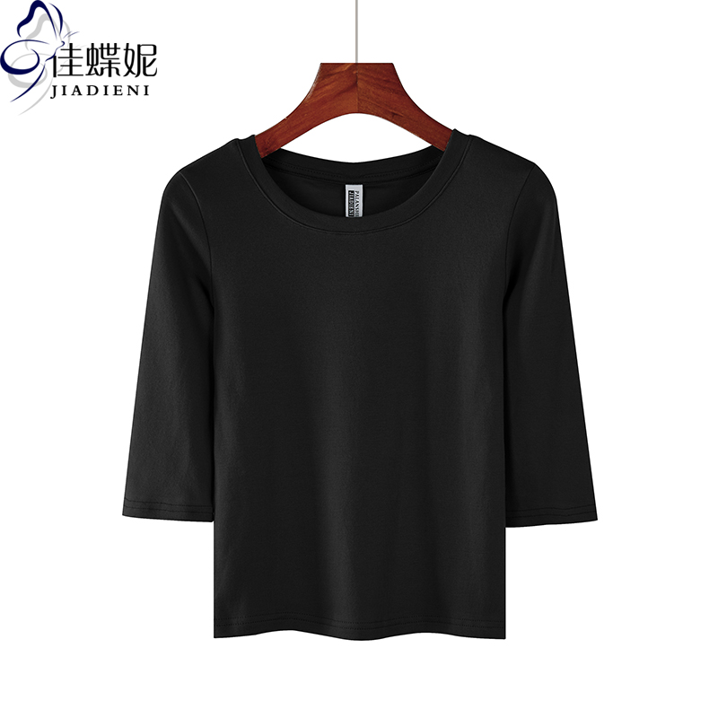 款 体恤上衣内搭打底中袖 韩版 纯白显瘦纯色七分袖 女 圆领修身 春季