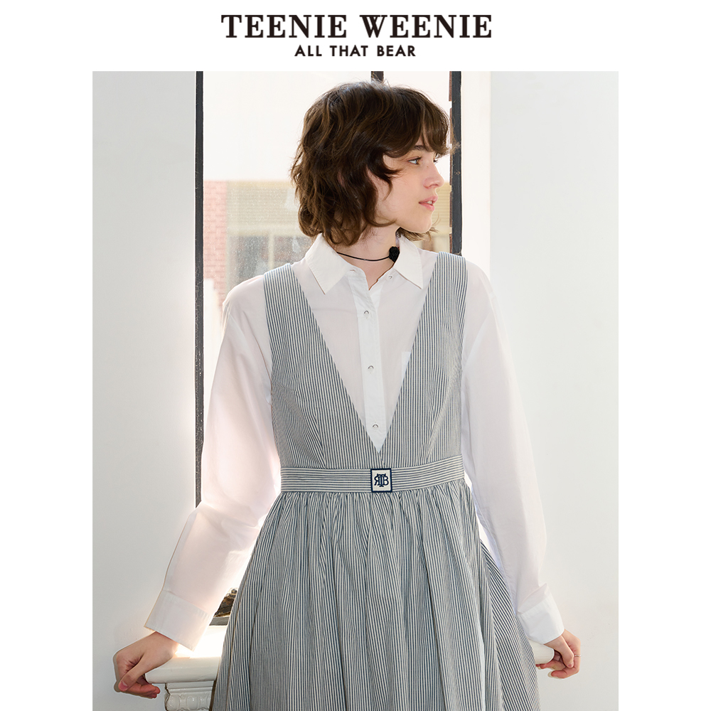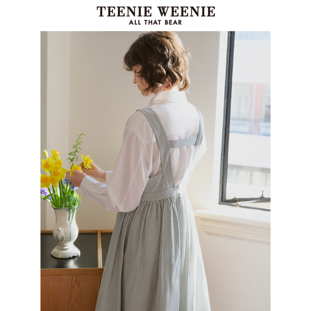 TeenieWeenie小熊女装 宽松舒适气质高腰设计感条纹吊带连衣裙 秋季