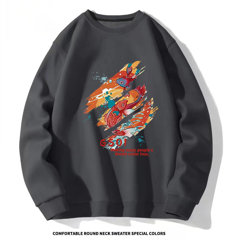 2024新款 t恤港风印花套头外套男 圆领卫衣男生宽松百搭潮牌ins长袖