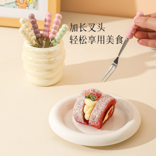 川岛屋可爱水果叉套装 家用轻奢高级感不锈钢蛋糕叉水果叉子收纳罐