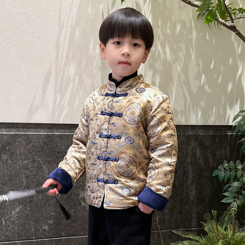 加厚汉服 小男孩中国风过年衣服儿童新中式 男童冬季 拜年服2024新款