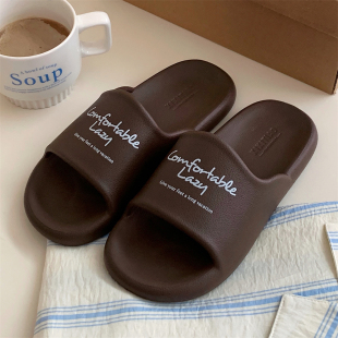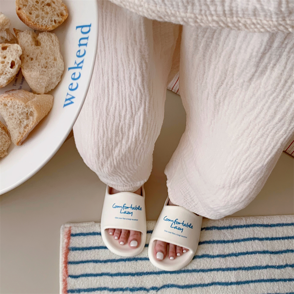 情侣防臭防滑男女浴室拖鞋 细细条 简约英文日系居家一字凉拖夏季