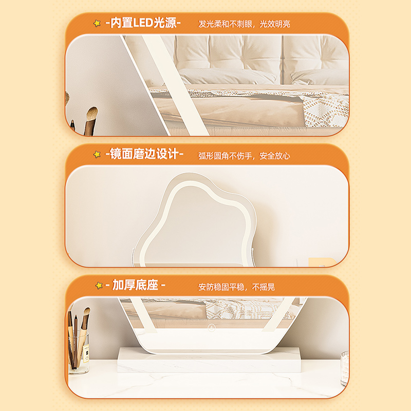 云朵化妆镜台式 轻奢LED智能主卧梳妆台异形镜子 桌面带灯2025新款