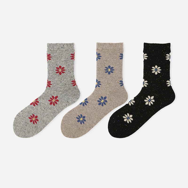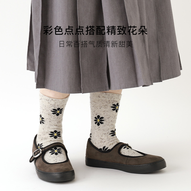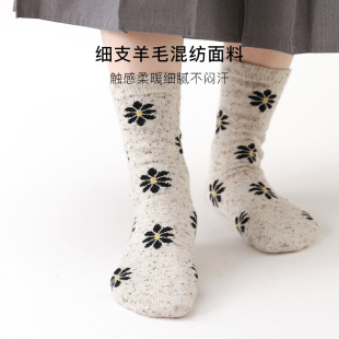 Tabio甜美花朵袜子女秋冬高弹透气含羊毛百搭时髦设计感中筒袜女