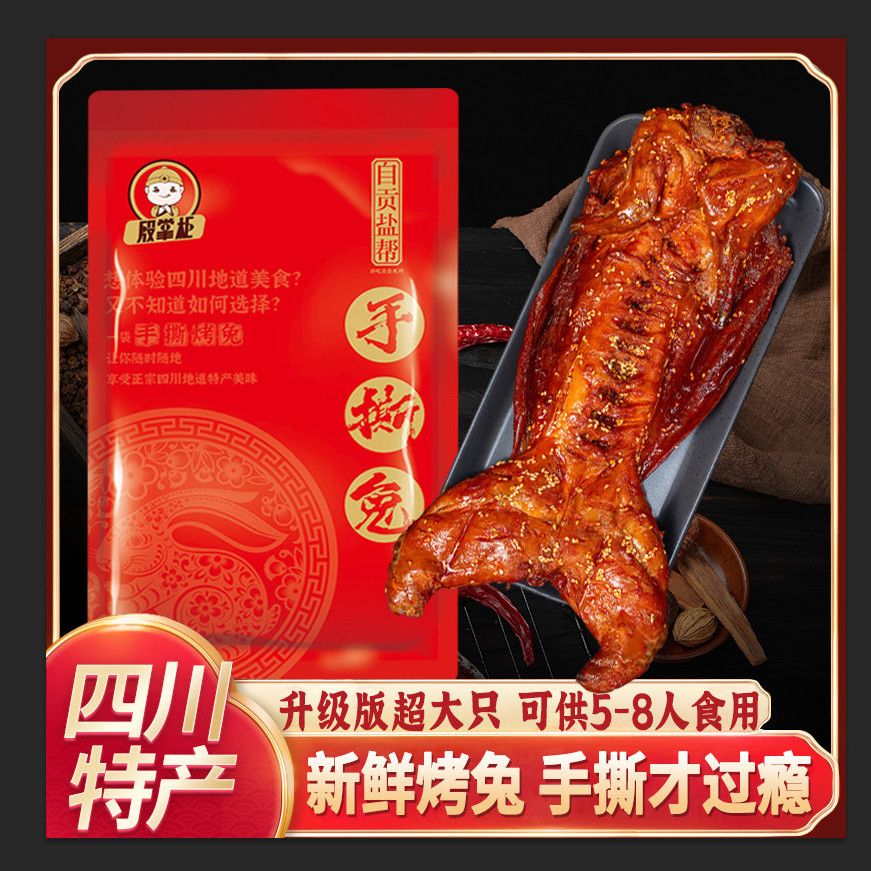 殷掌柜手撕兔肉整只烤兔即食冷吃麻辣兔头兔腿四川特产成都名小吃