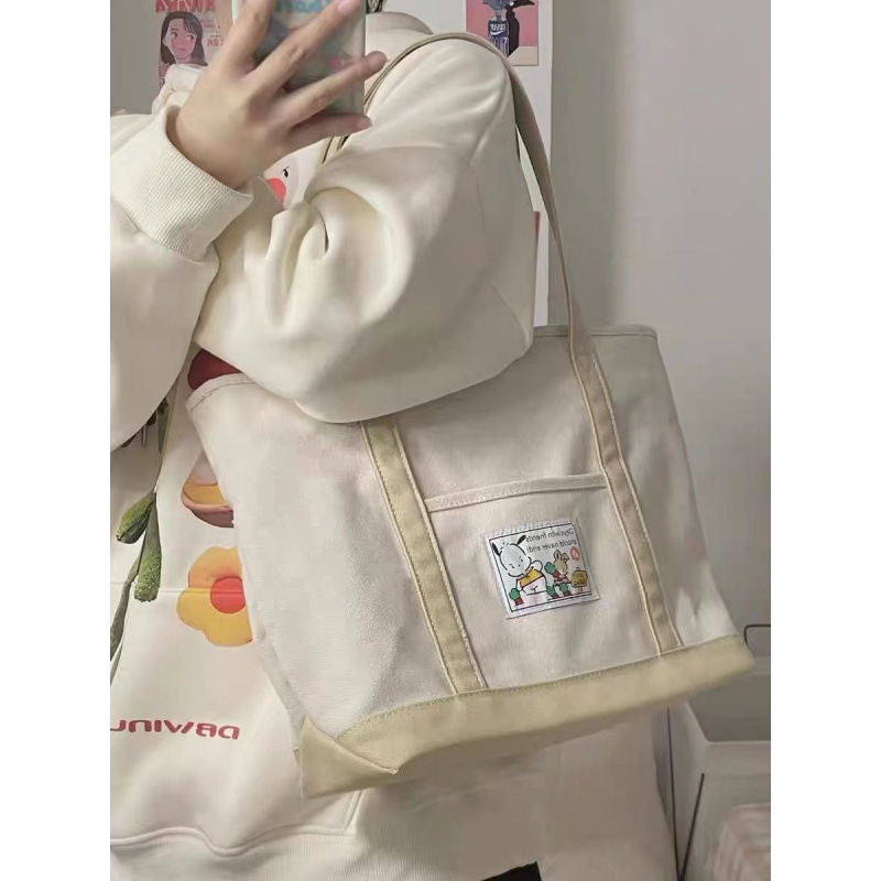 帕恰狗帆布包日系休闲学生上课大容量单肩手提托特包百搭通勤女包