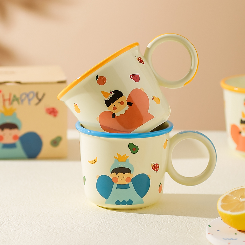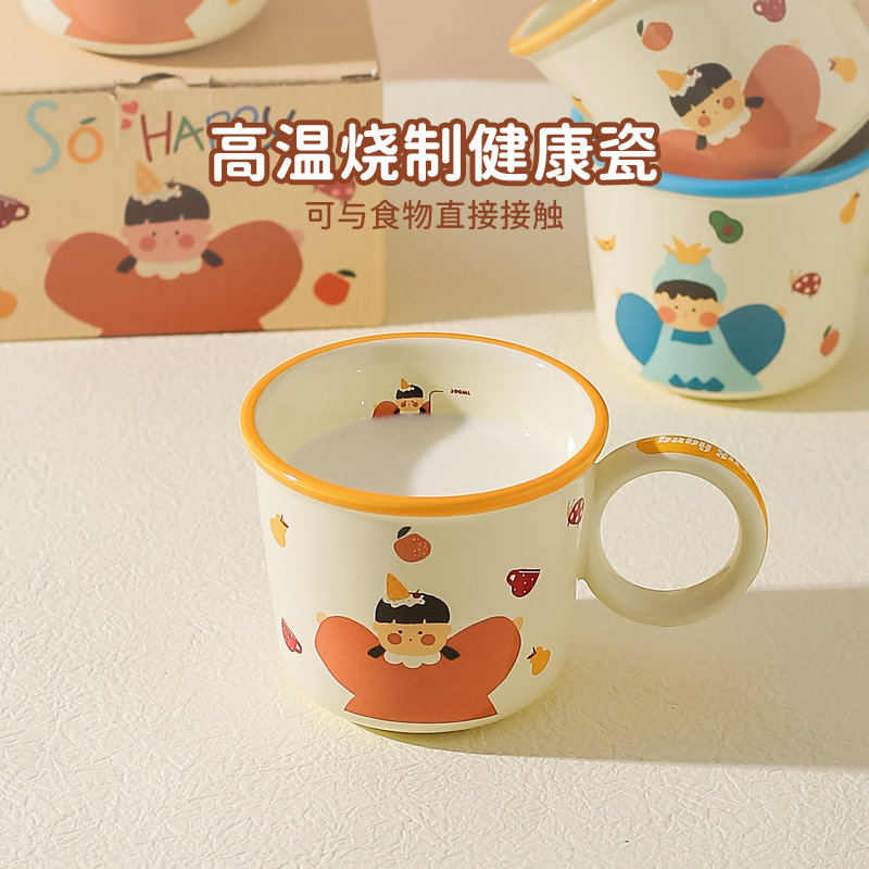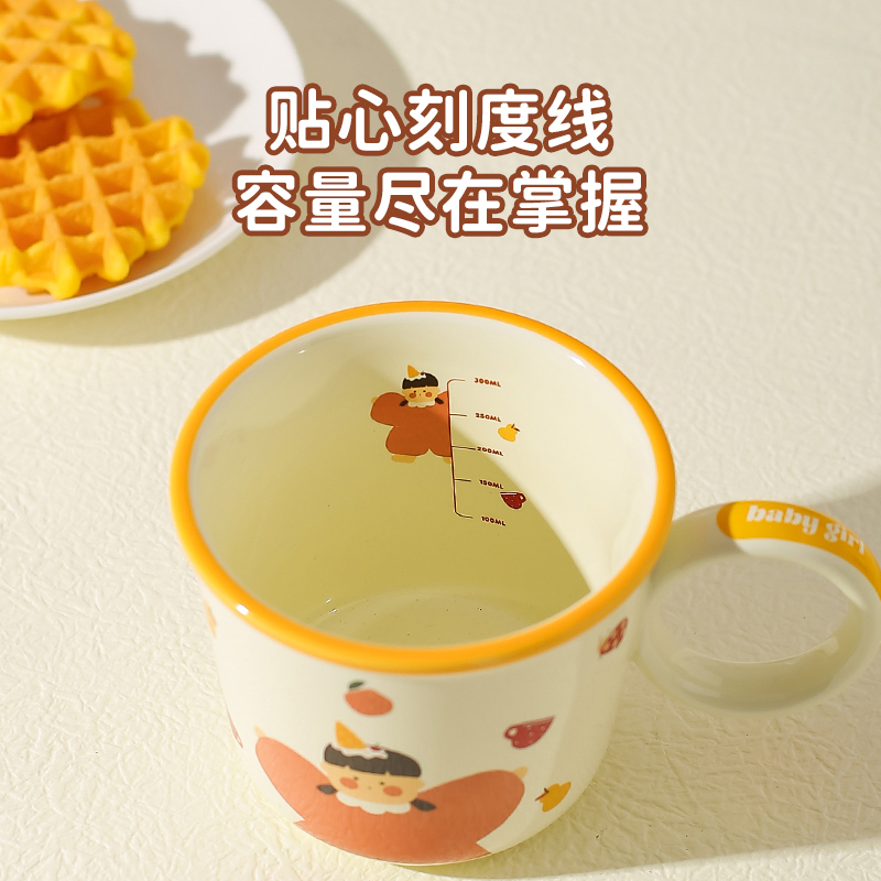 川岛屋刻度牛奶杯微波炉可加热儿童水杯家用陶瓷马克杯燕麦早餐杯