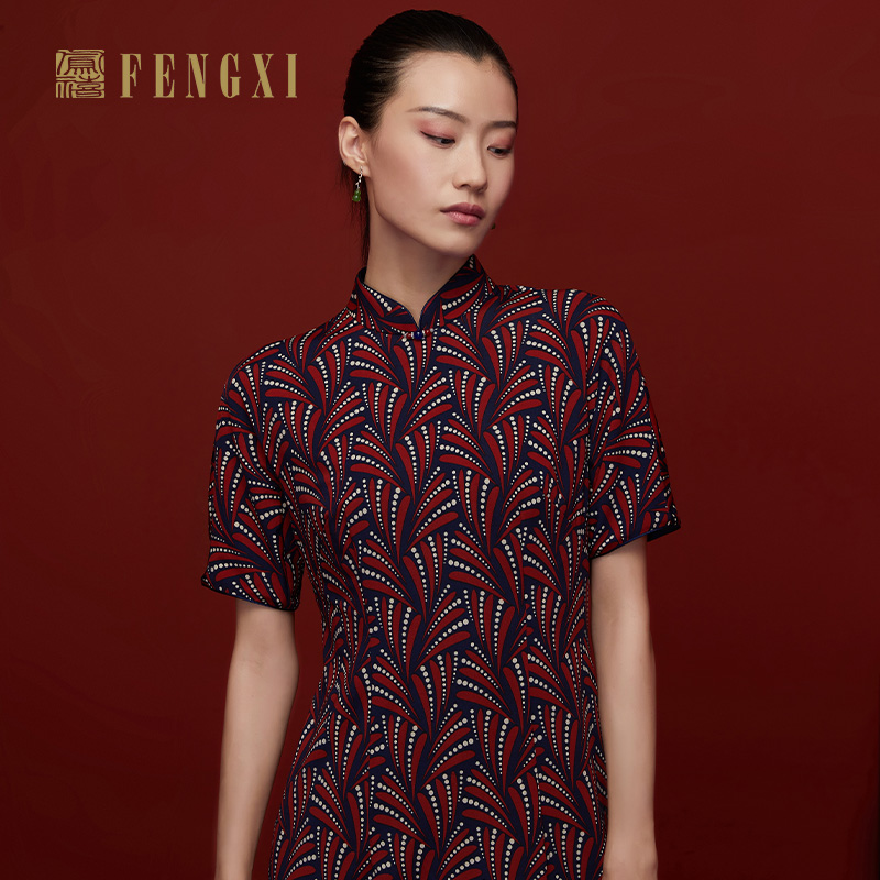 国潮连衣裙 改良改良旗袍日常可穿开叉长款 凤禧夏季 复古高雅年轻款