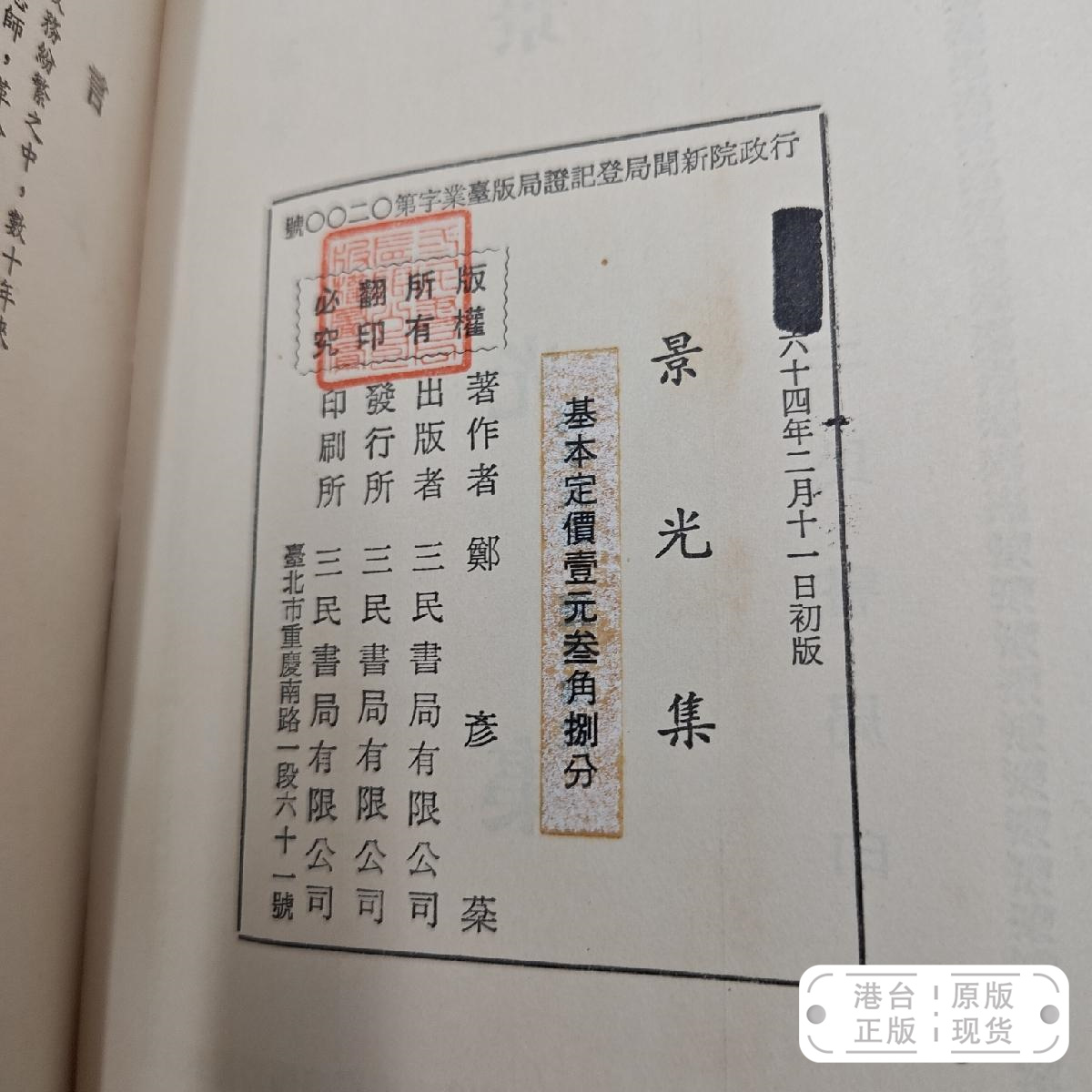 自然旧 锁线胶订 台湾三民书局版 郑彦棻 现货 港台原版 正版 景光集