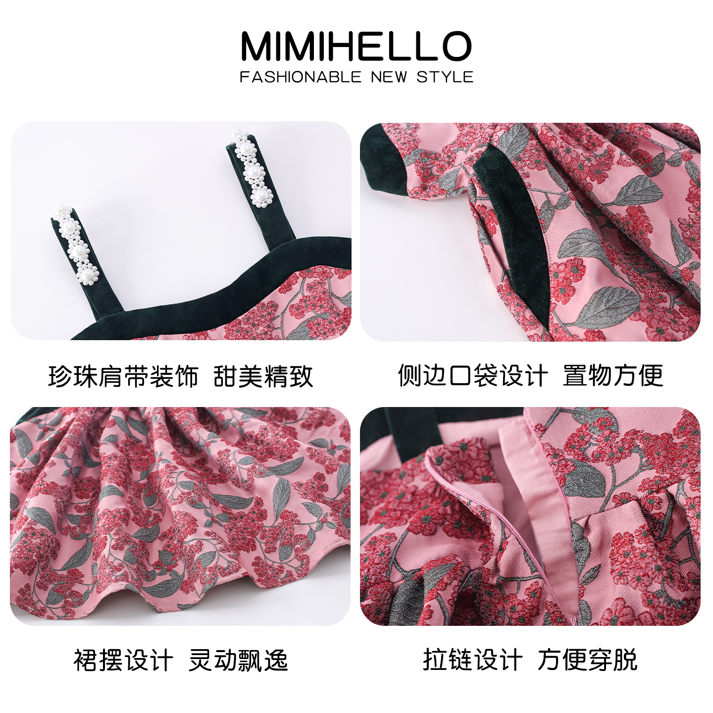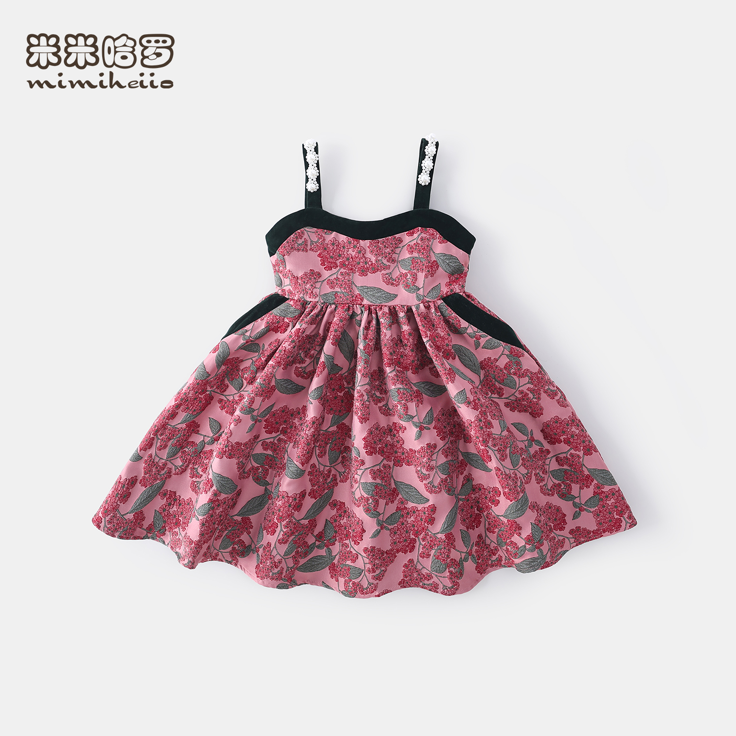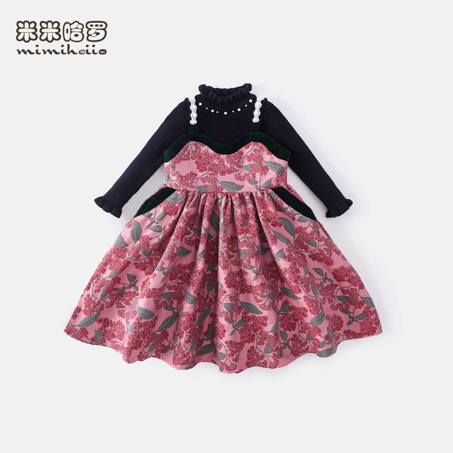 女童碎花吊带连衣裙秋冬装 小女孩洋气公主裙子女宝两件套 2025新款