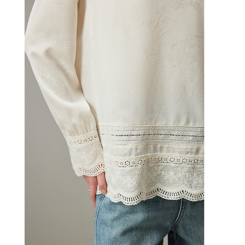 衬衫 圆领打底衫 女2025年秋季 镂空花边薄款 新款 dfvc轻国风提花长袖