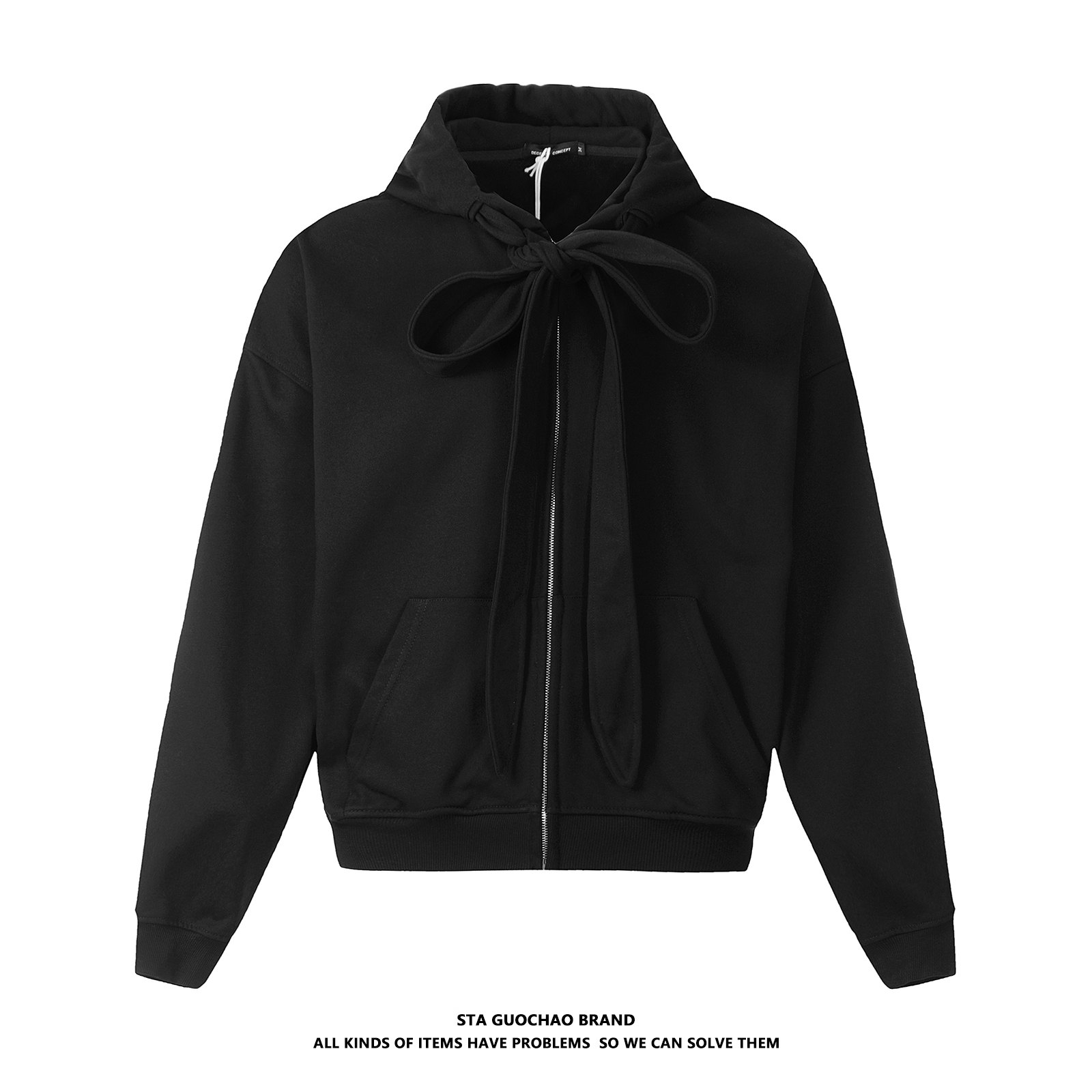 上衣 连帽卫衣男女宽松休闲情侣开衫 STA潮牌美式 复古绑带设计短款