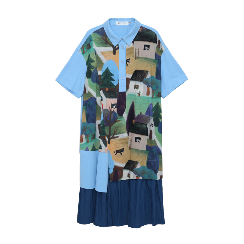 MOVEUP幻走2025春季 .FUN系列polo领假两件复古印花针织连衣裙 新款