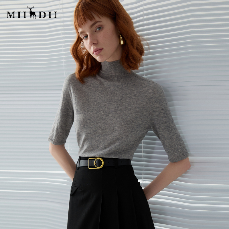 显瘦中领针织衫 半高领无袖 内搭坎肩修身 灰色西装 背心女羊毛打底衫