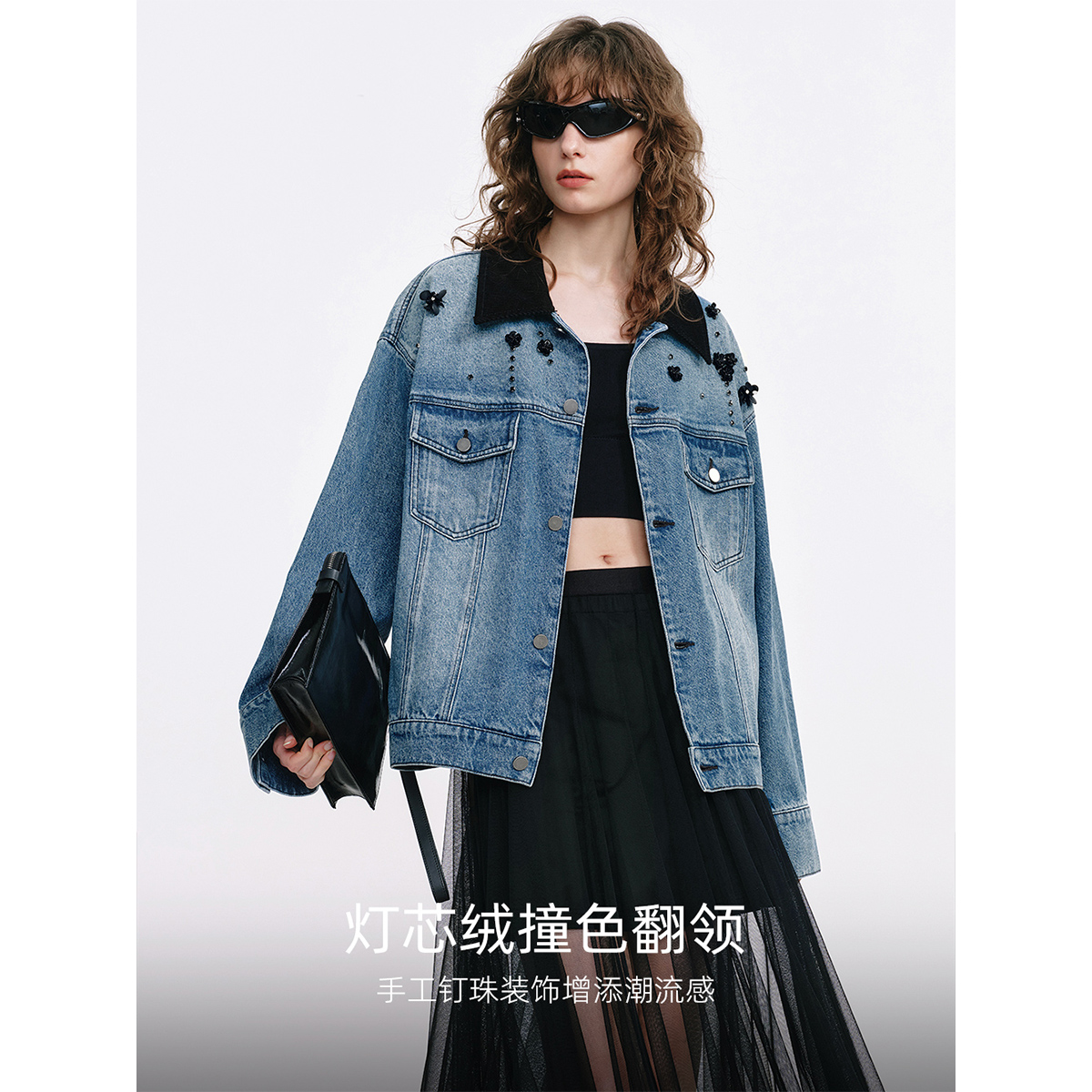 Lilbetter原牛短宽版 外套 哥萨克牛仔夹克2025秋明线设计翻领工装