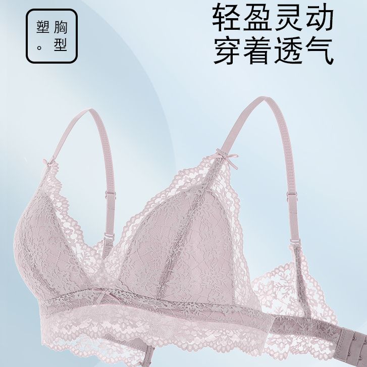 素肌良品小蔷薇无钢圈薄款 性感小胸聚拢文胸秋 透气内衣女蕾丝套装