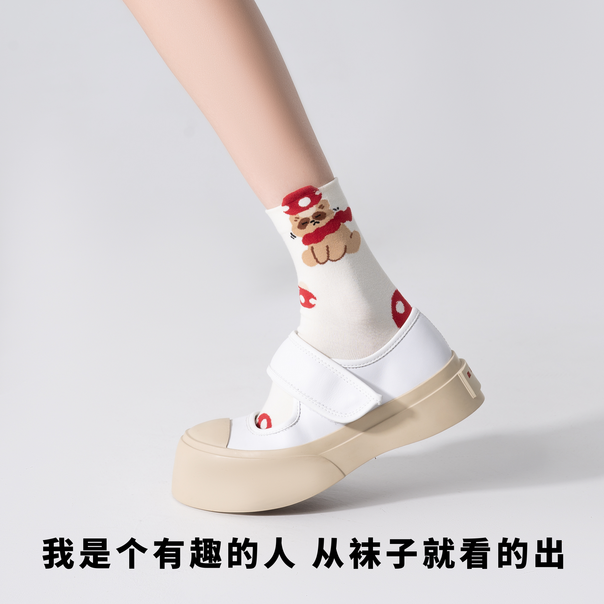 有棵树袜子纯棉女士秋冬7A抗菌透气中筒袜白色长筒袜 复古花纱