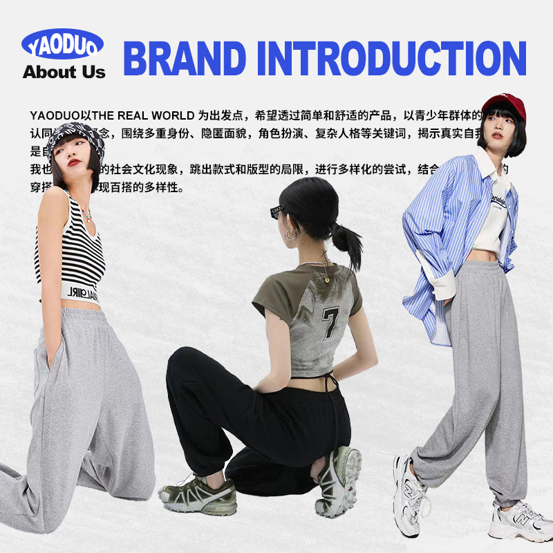 加绒街舞穿搭褶皱宽松休闲长裤 女秋冬季 子 灰色运动卫裤 自然涩美式